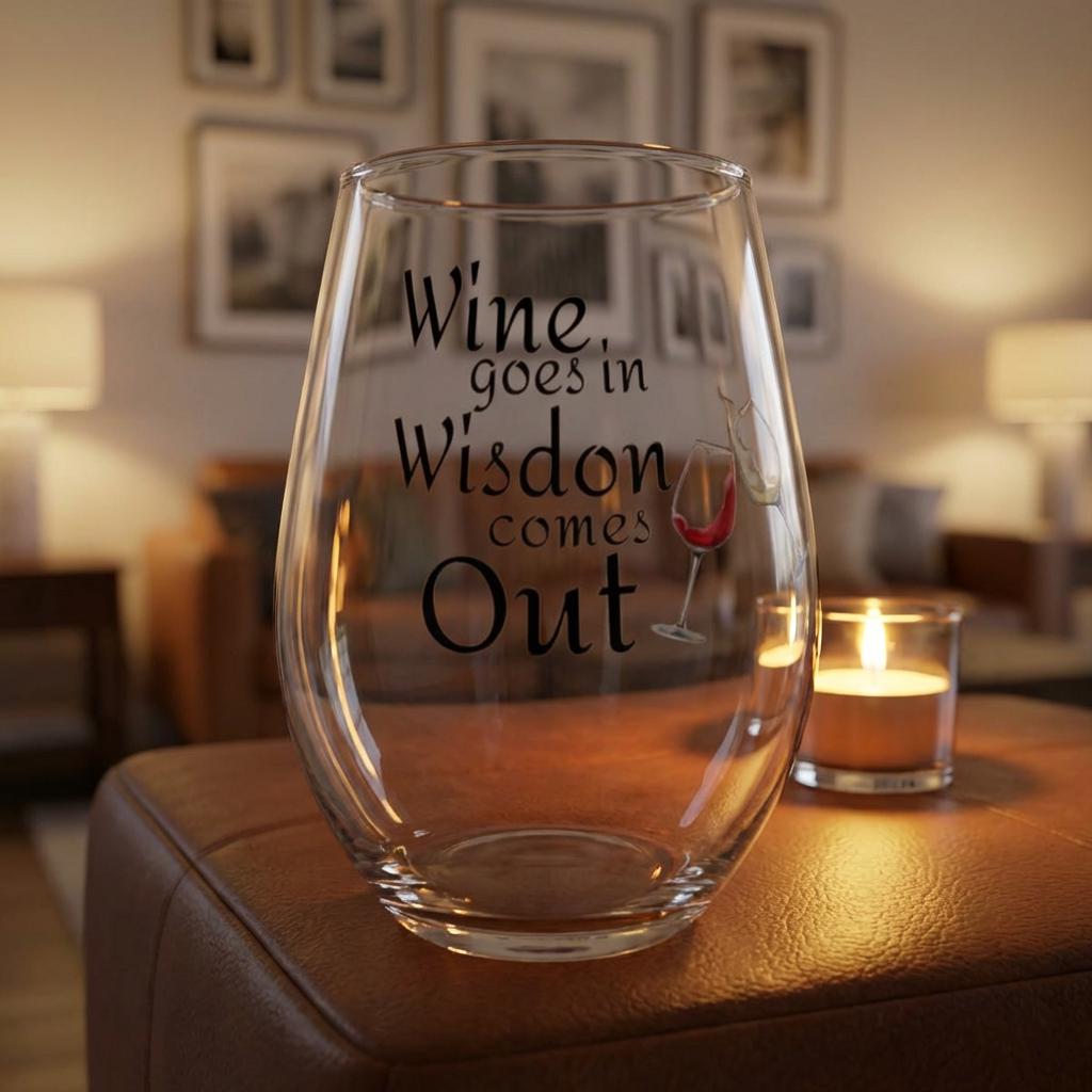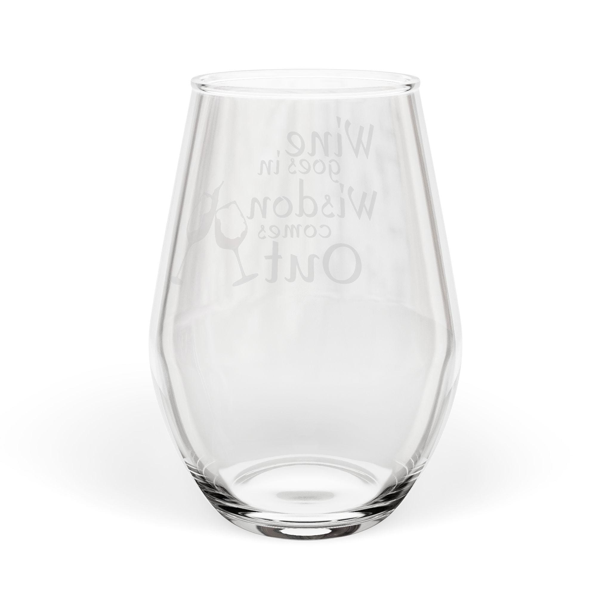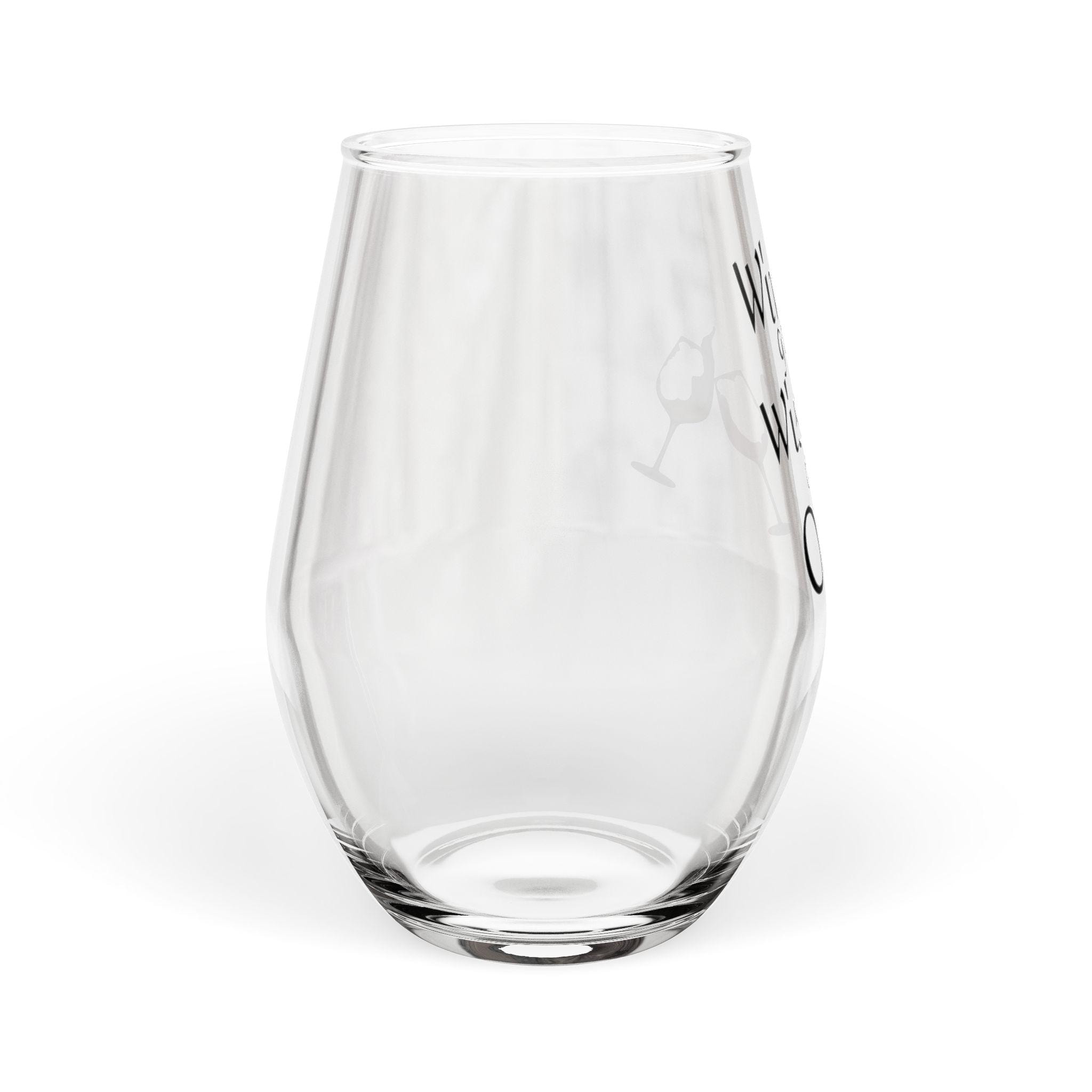 A stemless wine glass that brings laughter and relaxed evenings to life. Lightweight but substantial, the 11.75oz glass carries a single glossy print that catches the light and the eye. The design — playful lettering with a tilted wine glass splash — reads like a wink across the table, turning slow nights in or lively catch-ups into moments that feel casual and cherished. Hand-wash care keeps colors bright, and the compact, stemless shape fits easily in hands and cabinets alike. Use it when you want a glass that’s as easygoing and witty as the company you keep.